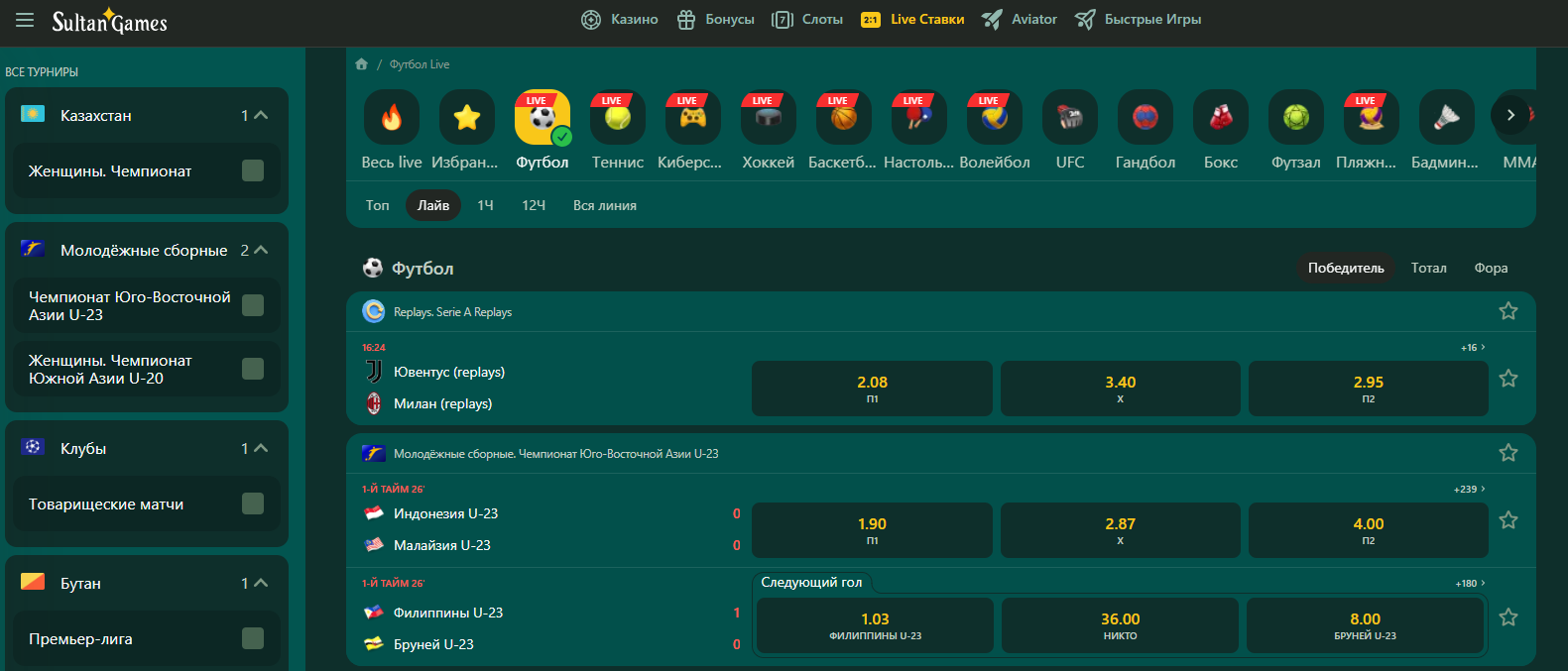 Платформа Sultan Games — это не только онлайн-казино, но и букмекерская зона с широкой спортивной линией. В Казахстане сайт активно используется для ставок в тенге, а регистрация и расчёты происходят в полном соответствии с международной лицензией Curaçao eGaming.